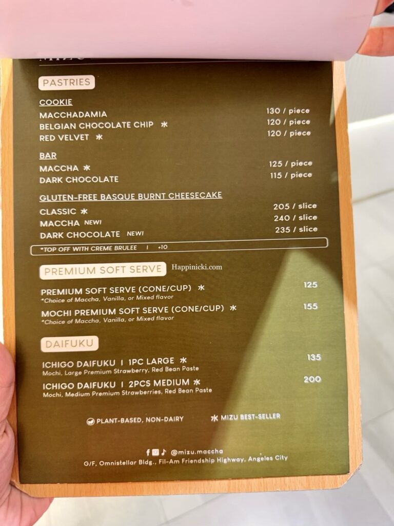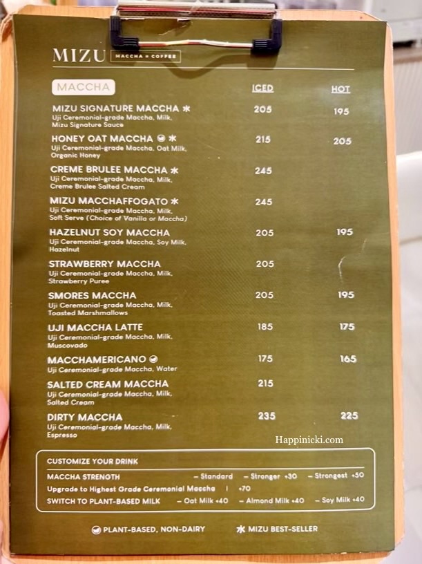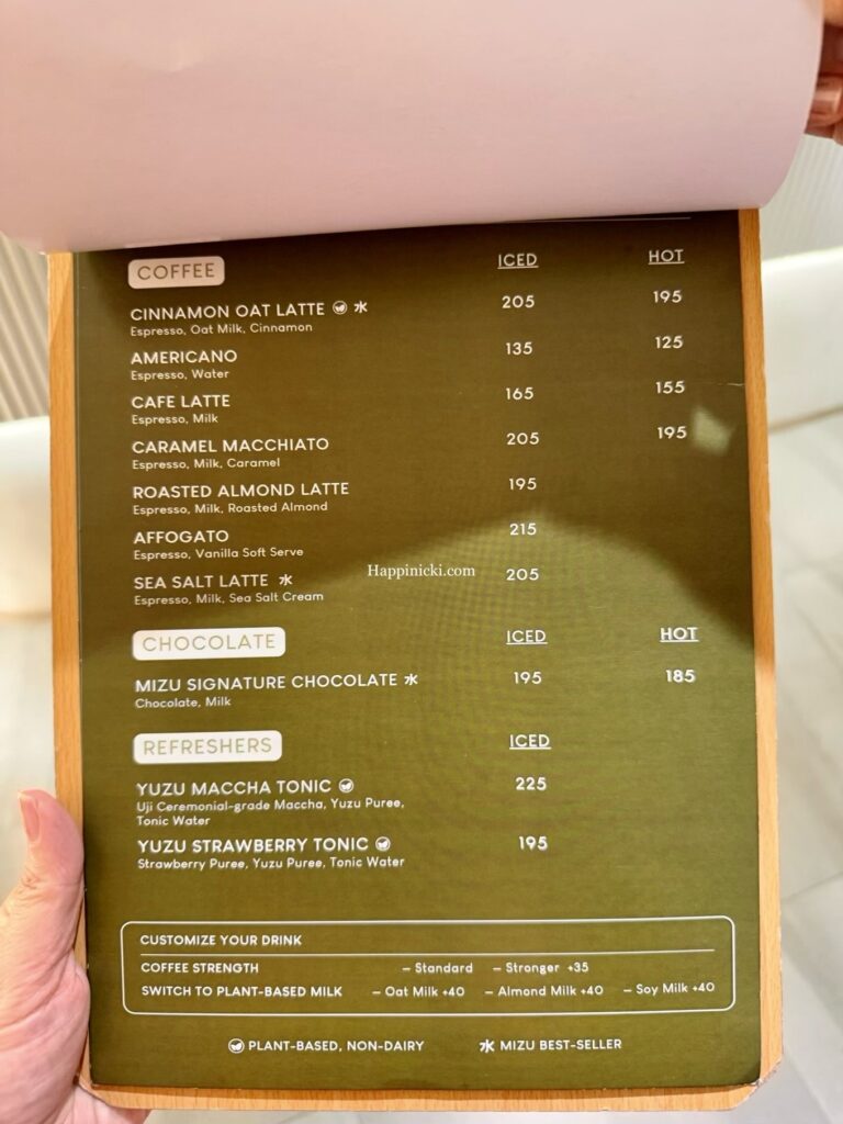NOTE: This Mizu Maccha + Coffee menu was taken last December 2024. Prices may have changed already.